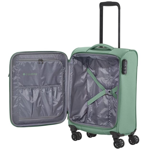 Travelite CROATIA TL080347 (поліестер / Mint / 39x55x20 см / 35 л) - маленька текстильна валіза з кодовим замком і переднім відділенням. Створена для поїздок вихідного дня та відряджень на 2-3 дні. Підходить для ручної поклажі на борту літака, що дозволяє уникнути додаткових витрат на реєстрацію багажу. Колекція також порадує різноманітністю кольорових дизайнів для незабутніх поїздок.