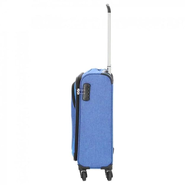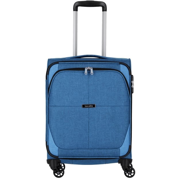 Travelite NIDA TL090447 (поліестер / синя / Маленький розмір 54х37х20 см; 35 л) - компактна і стильна 4-колісна валіза в сучасному текстильному дизайні. Проста функціональність для особистих та робочих поїздок на кілька днів. Внутрішні та периферійні відділення та кишені максимально зручно впорядкують ваш основний багаж та речі, які можуть знадобитися у дорозі.