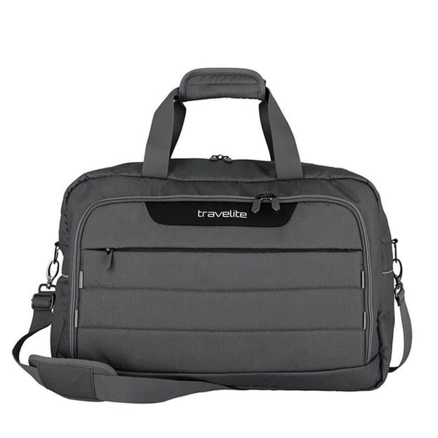 Travelite Skaii Anthracite (сіра, 32 літри) - практична та легка дорожня сумка-рюкзак. Колекція виготовлена з поліефірної тканини, отриманої із сертифікованих перероблених пластикових відходів. Таким чином, у цикл не потрапляє новий пластик. Завдяки функції рюкзака ви можете використовувати Skaii Weekender, як дорожню сумку, так і рюкзак. Плечові лямки при необхідності можна легко заховати у велику задню кишеню. Також сумку-рюкзак можна легко прикріпити до ручки валізи, якщо ви подорожуєте з кількома одиницями багажу. Ця модель може взяти на себе практично будь-які пригоди і завжди залишається у відмінній формі.