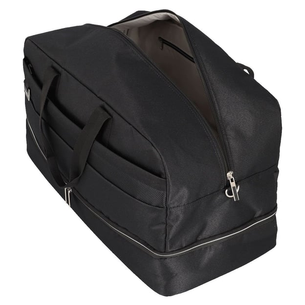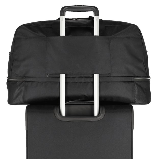 Travelite Miigo Black (чорна, 58 літрів) - стильна дорожня сумка для різних поїздок. Зовнішній матеріал та підкладка виготовлені з переробленого поліестеру (R-PET). Волокна R-PET у цих матеріалах із сертифікованих перероблених пластикових відходів, які потім використовують для створення текстилю. Сумка має окреме відділення для білизни, яке дозволить вам упорядкувати свої речі і відокремити чистий і брудний одяг. На лицьовій стороні є додаткова кишеня на блискавці, куди можна покласти корисні аксесуари. Сумку можна закріпити на ручці валізи. Міцні подовжені ручки дозволяють переносити сумку в руках, а знімний ремінь - на плечах.