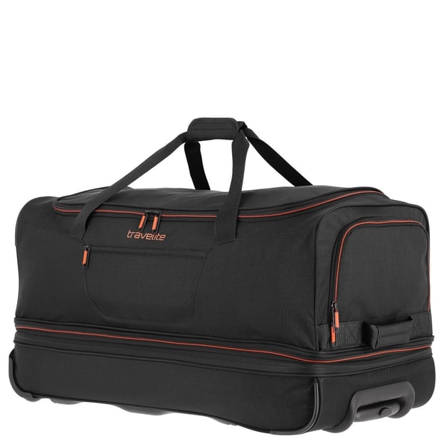 Travelite BASICS/Black (чорна, 98-119 літрів) - велика дорожня колісна сумка з розширенням. Чудово поєднує легкість, надійність і практичність для зручного зберігання необхідних речей в подорожах. Функціональна модель одразу справляється з двома функціями &ndash дорожньої сумки та валізи на 2 колесах. Двокамерне відділення з функцією збільшення простору, ідеально підходить для пакування речей. В зовнішніх кишенях зручно зберігати предмети першої необхідності.
