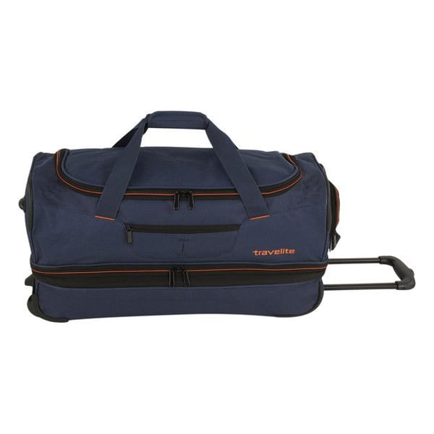 Travelite Basics (синя, 98 літрів) - велика дорожня колісна сумка. Чудово поєднує легкість, надійність і практичність для зручного зберігання необхідних речей в подорожах. Якісні матеріали та фурнітура від німецького бренду Travelite гарантують безтурботну подорож. Функціональна модель одразу справляється з двома функціями дорожньої сумки та валізи на 2 колесах. Двокамерне відділення з функцією розширення, ідеально підходить для пакування речей. Практичні зовнішні кишені в яких зручно зберігати предмети першої необхідності.