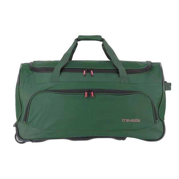 Travelite Basics Fresh Dark Green (зелена, 89 літрів) - велика та стильна дорожня сумка на колесах від німецького бренду Travelite. Модель з одним просторим відділенням із широким доступом для зручного пакування та огляду речей. Матеріал, що складається з міцного поліестеру. Він довговічний і стійкий до зношування, та різного роду пошкоджень. Є два варіанти транспортування сумки. Можна її перевозити, завдяки двоколісній системі, керуючи міцною висувною ручкою, або просто переносити в руках подовженими ручками з м'яким фіксатором. Яскрава палітра кольорів серії Basics Fresh надихає на літній настрій та точно не залишить нікого без уваги.