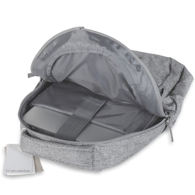 Travelite Basics Light Grey (27x41x12 см / 13 л / світло-сірий) - базовий рюкзак з місцем для ноутбука 13 дюймів для повсякденного використання. Популярна колекція базових повсякденних рюкзаків Travelite BASICS поповнилася ще одним універсальним дизайном для роботи та дозвілля. Виконаний в елегантному світло-сірому кольорі, він поєднує сучасний дизайн і практичність. Виготовлений з міцного матеріалу, який легко чиститься і швидко сохне. Міський рюкзак з двома місткими відділеннями на блискавці, забезпечують чудову організацію і легкий доступ до речей. В одному з відділень розташована відкрита кишеня для зберігання ноутбука діагоналлю до 13 дюймів або планшета. З боків рюкзака розташовані дві відкриті кишені для напоїв або парасольки. Дихаюча спинка і зручні регульовані ремені гарантують комфорт при тривалому носінні. Рюкзак можна легко прикріпити до ручки валізи, якщо ви подорожуєте з кількома одиницями багажу.