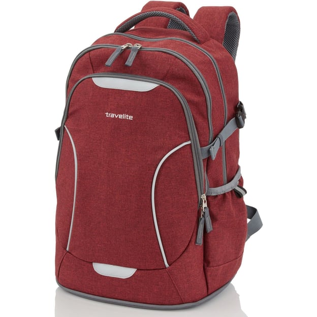 Travelite BASICS Bordeaux TL096312-70 - повсякденний рюкзак зі світловідбивними вставками забезпечують безпеку в умовах низької освітленості. Ця модель ідеально підходить для активного способу життя, пропонуючи функціональність і стиль в одному виробі. М'які регульовані наплічні лямки та нагрудний ремінь гарантують комфорт під час носіння, а текстильна планка на тильній стороні дає змогу зручно кріпити рюкзак на висувну ручку багажу, роблячи його ідеальним для подорожей.