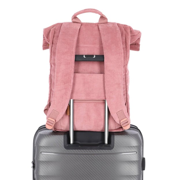 Travelite Cord Rose (30x43x14 см / 17 л / рожевий) - жіночий вельветовий рюкзак з кишенею для ноутбука до 15 дюймів. З рюкзаком Rollup з колекції Cord ви готові до будь-яких викликів повсякденності. Колір Rose ніжний і романтичний, стане привабливим аксесуаром для стильних особистостей. Можливість регулювати об'єм та форму аксесуара дозволяє носити в ньому все, що завгодно: від спортивного спорядження для тренування в залі до робочої офісної техніки та одягу для відрядження.