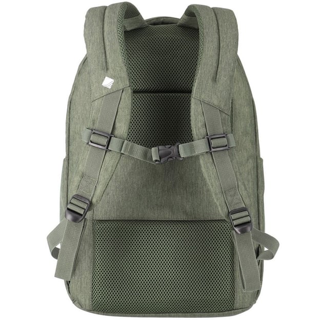 Якісний матеріал із поліестеру практично не вбирає вологу, легко очищається і не втрачає форму. Два великих відділення призначені для основних речей, великих папок формату А4 і ноутбука до 15,6 дюймів. Вертикальна кишеня на блискавці і невелике відділення-органайзер з безліччю корисних кишень. Дві бічні кишені відкритого типу легко вміщують пляшку води та парасольку. М'які наплічні ремені та нагрудний ремінь, що регулюється, роблять універсальний рюкзак справжнім дивом функціональності.