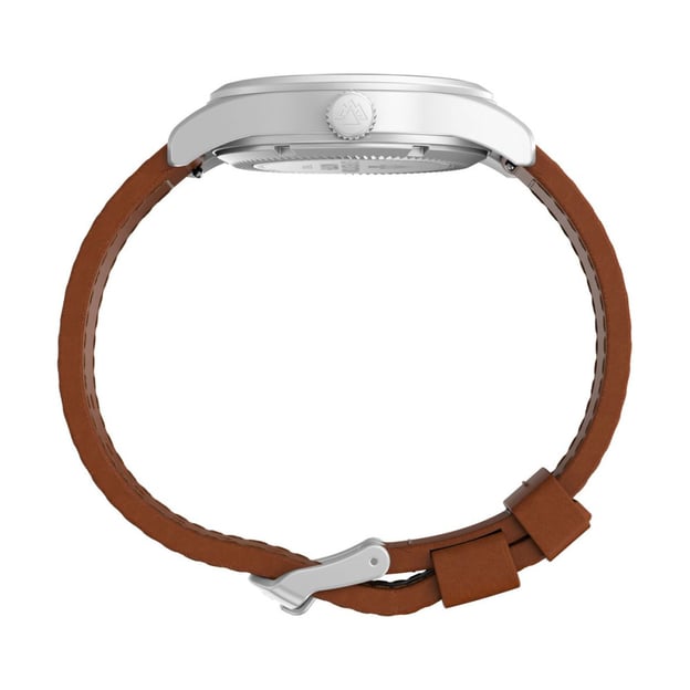 Timex EXPEDITION North Field Solar практичний наручний годинник із корпусом середнього розміру 36 мм, який ідеально підходить для тих, хто цінує вінтажний стиль та має тонке зап’ястя. Завдяки сонячному механізму він працює від будь-якого джерела світла – природного чи штучного – і може зберігати заряд до 4 місяців без додаткової підзарядки. Це робить його надійним супутником для активного відпочинку та подорожей. Модель оснащена сапфіровим склом із антибліковим покриттям, люмінесцентними стрілками для зручності у темряві та герметичним корпусом із загвинчуваною заводною головкою й задньою кришкою. Завершує образ коричневий ремінець зі шкіри Ecco™ DriTan™, виготовлений екологічними методами, що додає годиннику сучасного акценту.