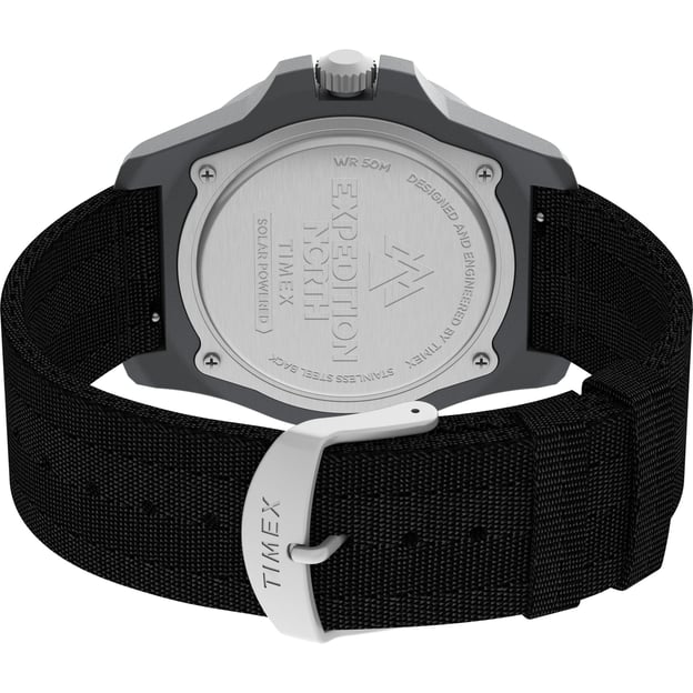 Чоловічий годинник Timex EXPEDITION North Freedive Ocean Solar Tx2v40500 - модель із сонячною батареєю та чорним екоремінцем. Механізм на сонячній енергії, який працює до 4 місяців та усуває необхідність заміни батарейки. Виконаний в стилі дайверського годинника з односпрямованим безелем і міцним захистом заводної головки. Чорний циферблат з апертурою дати, великими люмінесцентними стрілками та індексами, що додасть зручності при зчитуванні показань циферблату годинника в темний час доби та в умовах обмеженої видимості. Вирушаючи у ваш наступний похід або експедицію, не забудьте ваш EXPEDITION. Серія простих зовні, але продуманих до найменшої дрібниці годинників для шанувальників туризму, екстріму. Вдале поєднання міцності, точності, функціональності та комфорту.