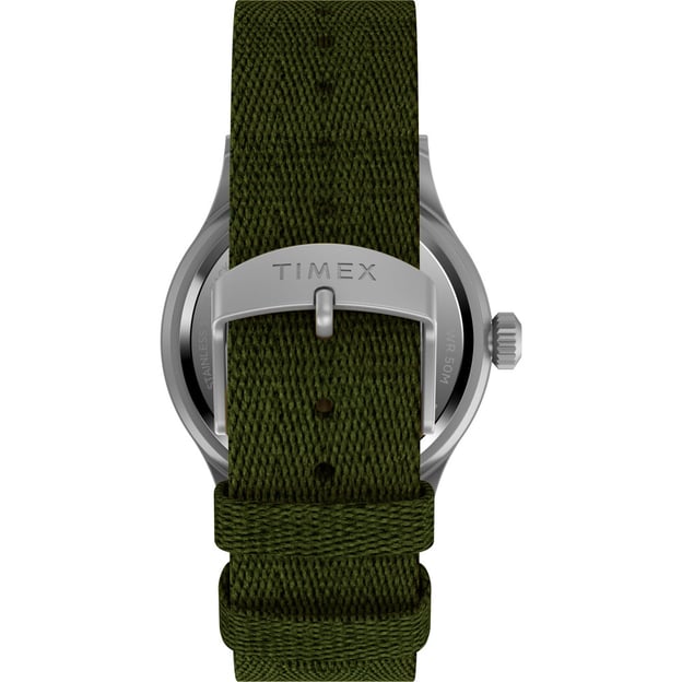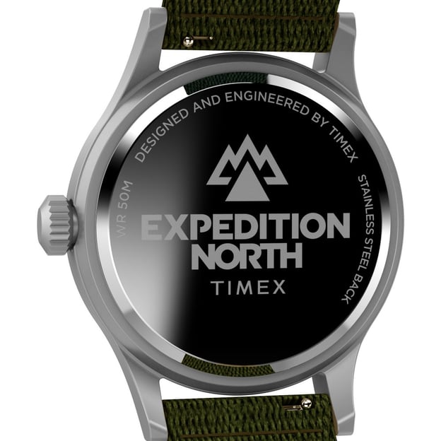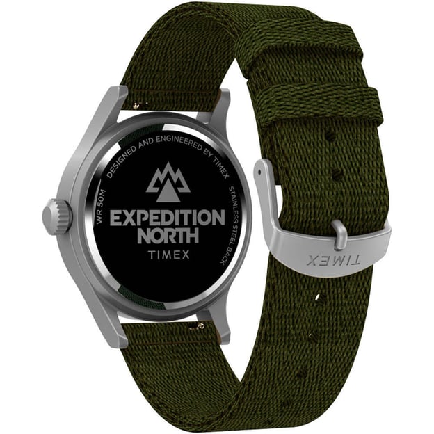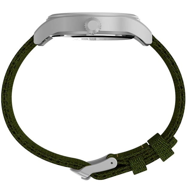 Чоловічий кварцовий годинник Timex EXPEDITION North Sierra Tx2v65800 - модель для шанувальників активного відпочинку на зеленому текстильному ремінці, який виготовлений із 100% переробленого пластику, що відзначено маркуванням у вигляді листка на виворітній частині ремінця. Бежевий циферблат з арабськими цифрами у форматі 12/24 години та люмінесцентними стрілками. Додайте до цього фірмове підсвічування Indiglo – й ідеальний годинник готовий.
