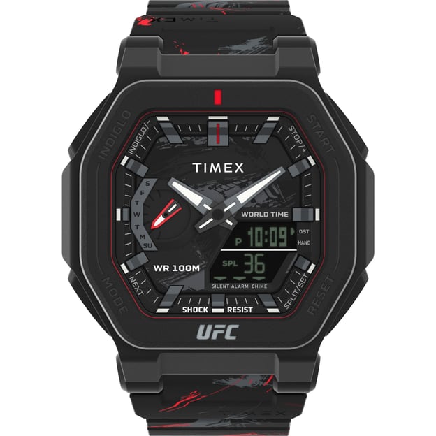 Timex UFC Colossus Fight Week Tx2v85300 - чоловічий удароміцний і водонепроникний аналого-цифровий годинник. Ідеально підійде всім любителям спорту.Спеціальна серія годинників, створена в кооперації зі спортивною організацією UFC, під егідою якої проводяться бої зі змішаних єдиноборств.