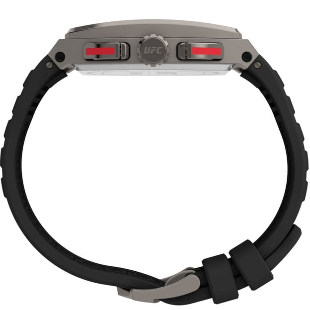 Timex Tx2v87400 - кварцовий чоловічий годинник з крутим сталевим корпусом-тонно 41 мм. Спортивна модель UFC зі спеціальної колекції, присвяченої змішаним єдиноборствам UFC. З цим «звіром» ви точно не залишитеся непоміченими. Від ефектного корпусу-тонно з гвинтами на безелі до спортивних функцій, серед яких тахіметрична шкала точно порадує любителів швидкості. Динаміки надають і контрастні елементи на чорному циферблаті, де також відображається час, дата, хронограф.