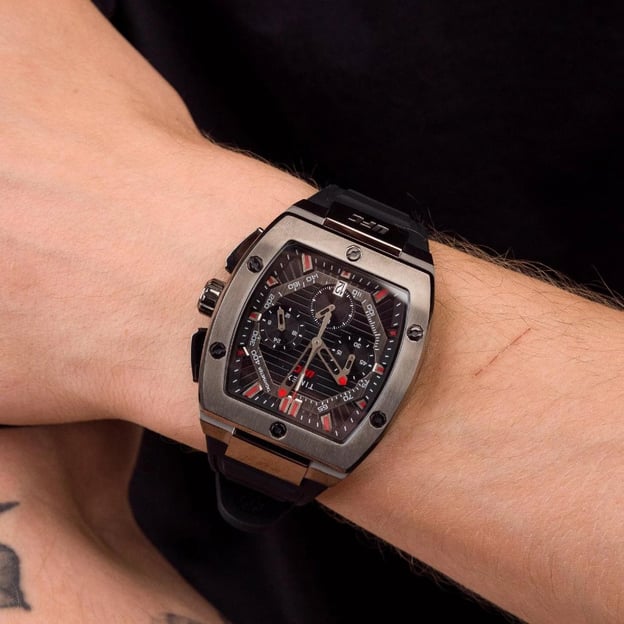 - Чорний аналоговий циферблат у спортивному дизайні.