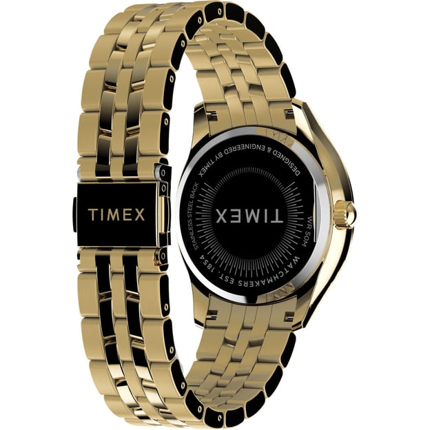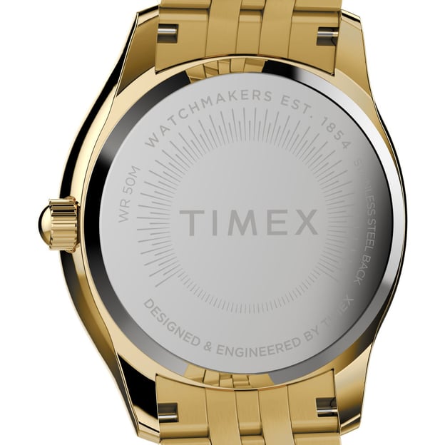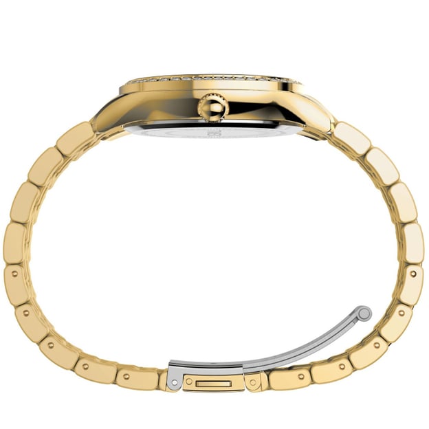 Американський жіночий годинник Timex ARIANA Tx2w17600 - модель у золотистому дизайні з інкрустацією кристалами, допоможе сяяти вам ще більше. Органічно виглядатиме як на святковому заході, так і у повсякденному образі. Годинник, який одразу має дві функції: допомагає контролювати час та виконує роль жіночної прикраси з ювелірним присмаком. Міцний латунний корпус якісно захищає кварцовий механізм, що працює на змінній батарейці. Елегантний браслет з неіржавної сталі виконаний в двоколірній матовій та полірованій обробці. Кришталеві мітки прикрашають текстурований циферблат у положенні «12, 3, 6 та 9 годин», а безель прикрашений мерехтливими кристалами.