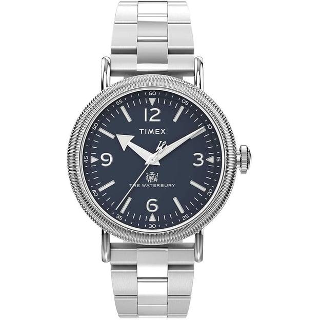 Timex WATERBURY Tx2w20500 - чоловіча кварцова класика з нотками вінтажності. Waterbury Standard Coin Edge у ретро стилі демонструє увагу до деталей, чудово оброблену поверхню та застосування винахідливості годинникового мистецтва. Timex взяли деталі з архівів і модернізували їх, використовуючи автентичні елементи Timex, такі як більш товсті стрілки, жирні арабські цифри, традиційне ограновування, яке імітує стос монет на безелі, велика заводна головка і стилізована буква W, що прикрашає циферблат і противагу секундної стрілки.