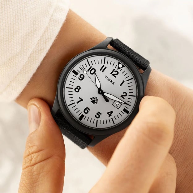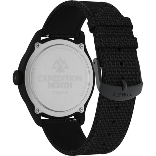 Чоловічий кварцовий годинник Timex EXPEDITION North Traprock Tx2w34700 - модель з простим дизайном на чорному текстильному екоремінці. Ремінець виготовлено зі 100% переробленого пластику та забезпечено основою з веганської шкіри, отриманої в результаті переробки шкірки та листя яблук. Цей годинник також оснащено люмінесцентними стрілками та мітками, які дозволяють легко зчитувати час за будь-яких умов освітлення. Вирушаючи у ваш наступний похід або експедицію, не забудьте ваш EXPEDITION. Серія простих зовні, але продуманих до найменшої дрібниці годинників для шанувальників туризму, екстріму. Вдале поєднання міцності, точності, функціональності та комфорту.