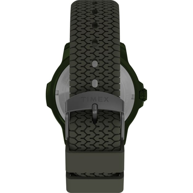 Чоловічий кварцовий годинник Timex EXPEDITION Timber Tx4b34700 поєднує витривалість, практичність та сучасний дизайн. Його зелений камуфляжний циферблат додає характеру та сміливості, а легкий алюмінієвий корпус діаметром 42 мм забезпечує міцність без зайвої ваги. Ремінець із м’якого силікону захисного кольору має унікальну текстуру, що нагадує протектор шини, створюючи відчуття надійності та стилю. Завдяки люмінесцентним стрілкам, міцному мінеральному склу та захисту заводної головки, цей годинник стане вашим надійним супутником у будь-яких умовах. Апертура дати на «3 години» додає зручності, дозволяючи завжди залишатися в курсі часу та подій.