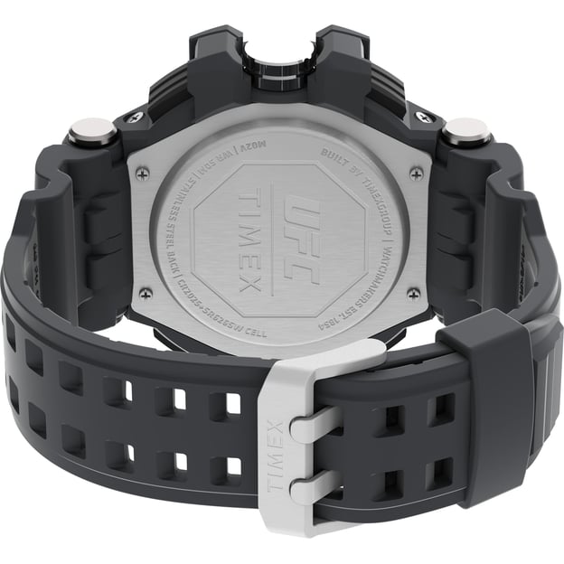 Timex Tx5m51900 - багатофункціональний чоловічий годинник 53 мм з комбінованим типом індикації. Крупна спортивна модель UFC Combat зі спеціальної колекції 2023 року, присвяченої світу єдиноборств UFC (Абсолютний бійцівський чемпіонат). Набір функцій включає 24-годинний хронограф з точністю 1/100 секунди, 24-годинний воєнний час, два часові пояси, календар та щоденну систему будильника/оповіщення. Надійна конструкція завдяки посиленому корпусу та стійкому до ударів склу, яке використовується в спортивних моделях годинників. Фірмова технологія підсвічування INDIGLO® поєднується з рівнем водонепроникності 50 м, тому ви зможете впоратися із завданням у будь-яких умовах.