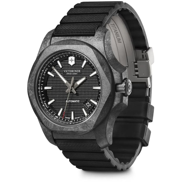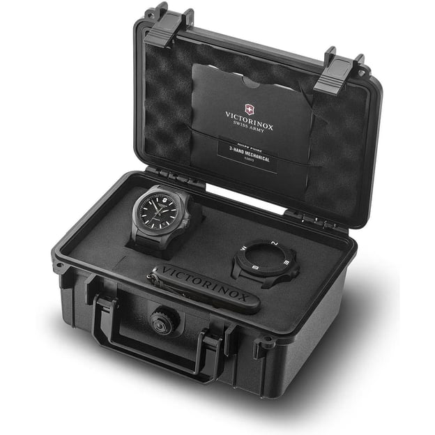 Victorinox Swiss Army V241866.1 - автоматичний карбоновий годинник I.N.O.X. Carbon Mechanical з колекційним кишеньковим ножем у крутому подарунковому боксі. Корпус годинника з карбону - матеріалу, що пройшов космічні випробування і має легку вагу, високу стійкість до подряпин. Для довговічного використання навіть у найекстремальніших умовах. Тему легкості та крутості підтримують також задня кришка та застібка з титану. Дизайн, у якому все доведено до досконалості. Висококласний швейцарський механізм із функцією автоматичного підзаведення. Оздоблення циферблата та ремінця рифленим візерунком, який впізнає кожен шанувальник швейцарських армійських ножів Alox. А у поєднанні з ексклюзивним кишеньковим ножем Spartan PS цей набір стає предметом захоплення.