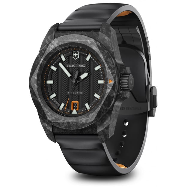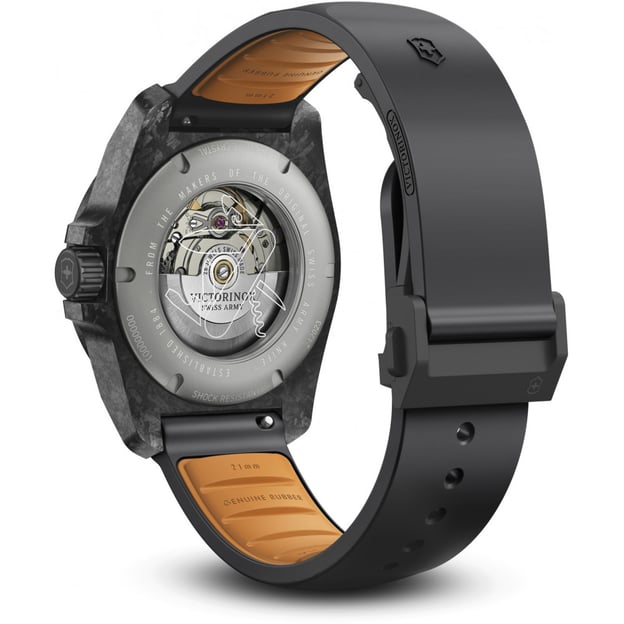 Victorinox Swiss Army V242023.1 - автоматичний карбоновий годинник I.N.O.X. Automatic із кишеньковим ножем Spartan ексклюзивного випуску. Корпус годинника з карбону - матеріалу, який пройшов космічні випробування і має легку вагу, високу стійкість до подряпин. Для довговічного використання навіть у найекстремальніших умовах. Тему легкості та крутості підтримує також задня кришка з титану. Висококласний швейцарський механізм із функцією автоматичного підзаведення та автономним запасом ходу до 38 годин. А у поєднанні з ексклюзивним кишеньковим ножем Spartan з класичними 12 функціями цей набір стає чудовим взірцем годинникового мистецтва для справжніх поціновувачів легендарного швейцарського годинника.