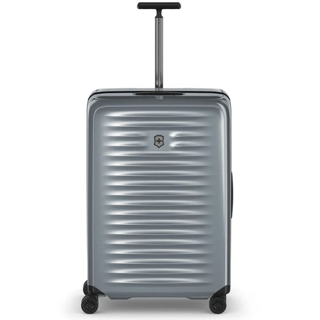 Victorinox AIROX/Silver Велика (50 x 75 x 32 см / 98 л / сріблястого кольору) - легка 4-колісна валіза великого розміру для подорожей з сім'єю. Стильний варіант для мандрівок з великою кількістю речей. Модель є частиною колекції легких валіз Airox і навіть найбільша важить всього 4,1 кг.