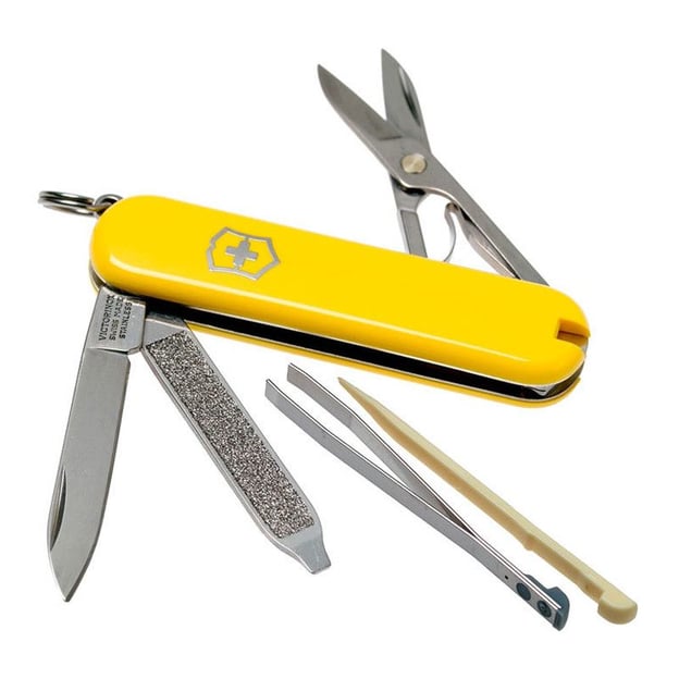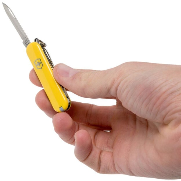 Victorinox CLASSIC SD 0.6223.8 - швейцарський складаний ніж з жовтими глянцевими накладками володіє 7-ма функціями. Стандартний набір інструментів підходить для виконання повсякденних завдань, так і для активного відпочинку. Завдяки своїй компактності, функціональності та надійності сподобається як дорослим, так і дітям. Всі інструменти гостро заточені та забезпечують хороший захист від вологи та корозії. До набору входять: