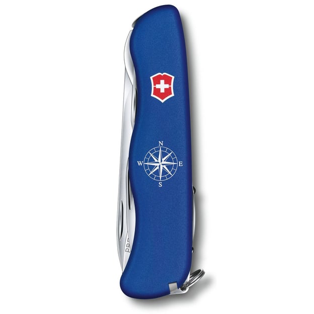 Victorinox SKIPPER 0.8593.2W - багатофункціональний складаний ніж, спеціально розроблений для використання на воді. Цей надійний інструмент ідеально підходить для яхтсменів, моряків і всіх, хто проводить час на воді. У ньому поєднуються висока якість матеріалів і міцність. Skipper має спеціальні функції, наприклад, він оснащений інструментом для роботи з вузлами і викруткою для регулювання обладнання на яхті. Його рукоятка із зображенням восьмипроменевої троянди вітрів має текстуровану поверхню для надійного тримання, навіть якщо руки мокрі або слизькі. Крім того, ніж оснащений фіксатором леза Liner Lock, який забезпечує безпечне та надійне використання без випадкового складання. До набору входять: