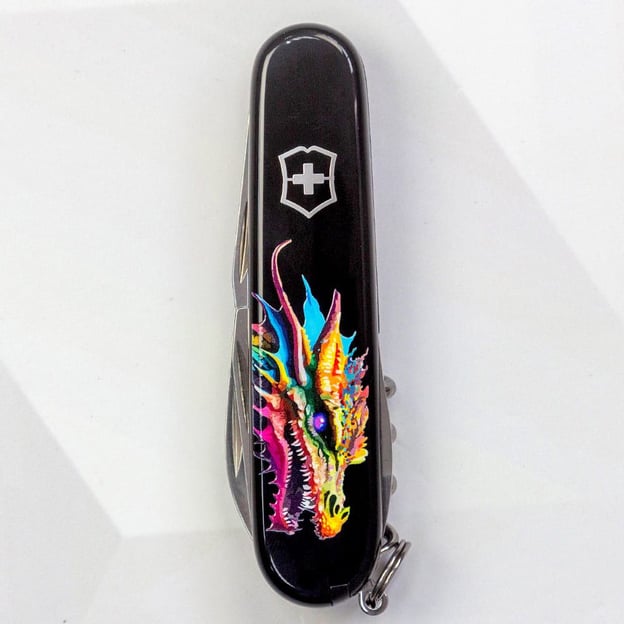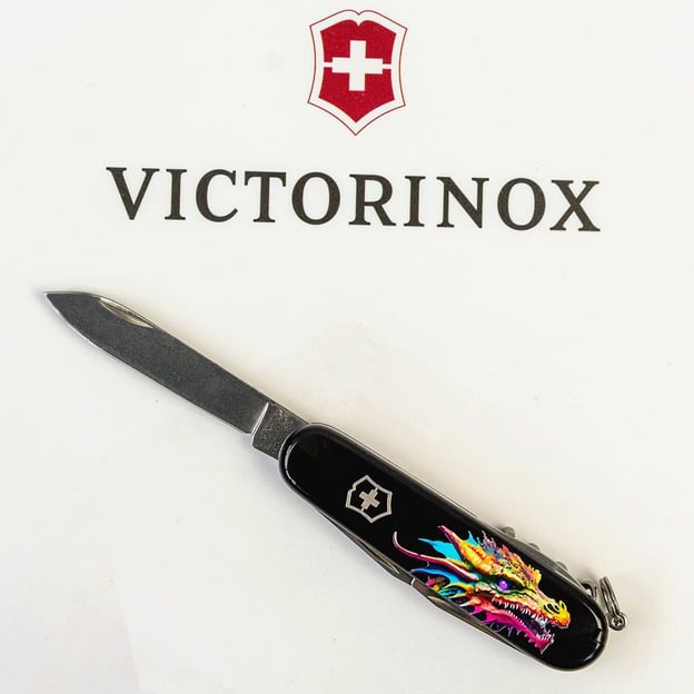Victorinox SPARTAN ZODIAC 1.3603.3.Z3330u - ексклюзивний кишеньковий ніж зі святкової колекції 2024, присвяченої року Дракона, вражає уяву своїм захоплюючим дизайном. Повноколірний цифровий друк на чорних накладках із зображенням яскравого дракона, вкритий глянцевим лаком. Ця модель ідеально підійде як презент до Нового року, особливо для колекціонерів, близьких та друзів, а також для всіх, хто захоплений світом фентезі та аніме.