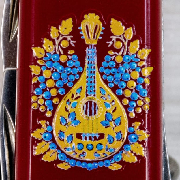 Пластикові накладки ножа прикрашені традиційними українськими орнаментами, виконаними в яскравих і насичених кольорах. Декор підкреслює багатство культурної спадщини та символізує єдність, свободу і зв'язок із природою. Кольоровий малюнок нанесено з використанням цифрового УФ друку. Модель Camper включає: