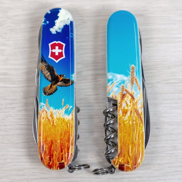 Victorinox CLIMBER UKRAINE 1.3703.7.T3230pw - складаний ніж стане незамінним помічником у будь-яких умовах і стильним аксесуаром для колекціонерів і шанувальників швейцарського бренду Victorinox. Рукоятка ножа виконана з міцного і довговічного пластику, яка захищена глянцевим лакованим покриттям, що запобігає появі подряпин і зберігає зовнішній вигляд на довгі роки. Поєднання яскравих кольорів і символічного дизайну робить цей ніж чудовим подарунком для тих, хто цінує якість і надійність.