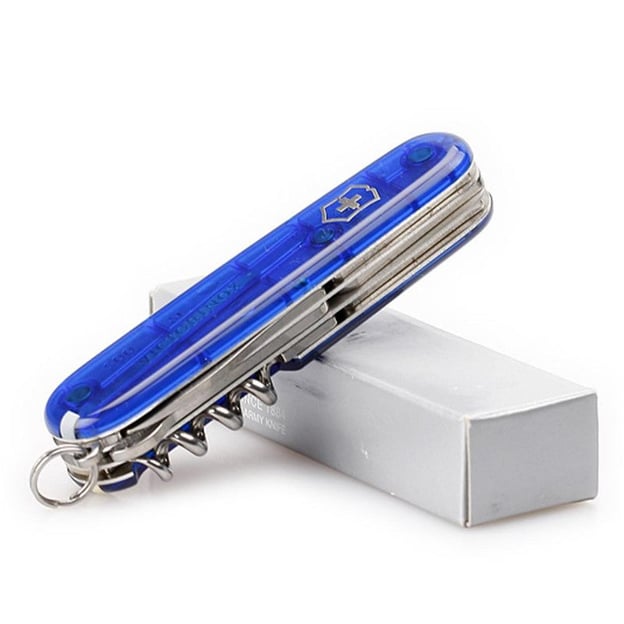 Victorinox CLIMBER 1.3703.T2 - кишеньковий ніж з напівпрозорими синіми накладками, є незамінним інструментом для любителів активного відпочинку. Крім того, він компактний і легкий, що робить його ідеальним для різних завдань, які можуть виникнути під час походу, альпінізму, сходження на гори або інших активностей на природі. Кожен інструмент Вікторінокс проходить ретельну обробку і контроль якості, щоб гарантувати гостру заточку і високу антикорозійність на довгі роки. Модель Climber включає 14 функцій: