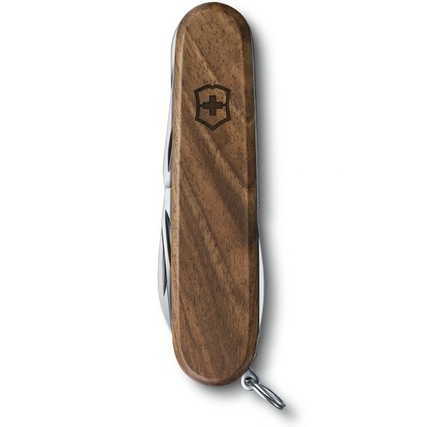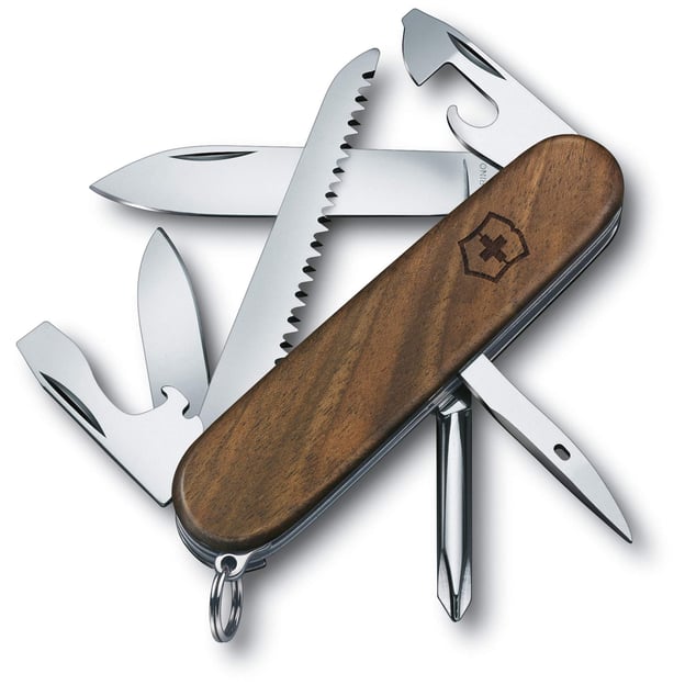 Victorinox HIKER WOOD 1.4611.63 - швейцарський кишеньковий ніж з дерев'яними накладками на 11 функцій, оснащений різноманітним набором інструментів, має ергономічну форму і компактні розміри, що робить його ідеальним для носіння в кишені або на поясі. Цей елегантний і функціональний мультитул поєднує в собі стиль і практичність, роблячи його ідеальним компаньйоном для походів, кемпінгу, риболовлі та інших пригод на свіжому повітрі. Не можна не відзначити його високу якість виготовлення, кожен інструмент Вікторінокс проходить ретельну обробку і контроль, щоб гарантувати гостру заточку і високу антикорозійність на довгі роки. Модель Hiker включає: