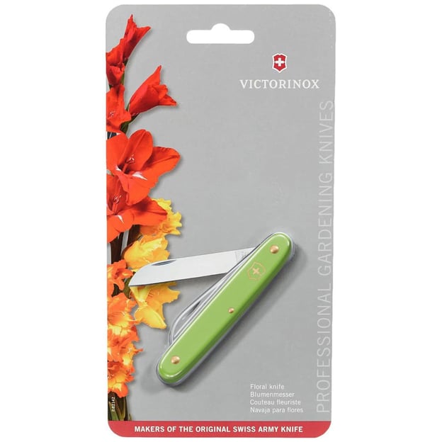 Victorinox Floral 3.9050.47B1 - це садовий ніж, створений спеціально для любителів саду та флористики. Кишеньковий ніж виконаний у лаконічному дизайні зі світло-зеленими матовими накладками і золотистими заклепками. Зручний і корисний під час роботи з рослинами та квітами. Ця модель оснащена гострим лезом 55 мм, яке підходить для обрізки стебел, жорстких гілок і листя. Крім того, він може бути використаний у повсякденних завданнях завдяки своїй універсальності, характерній для продукції Вікторінокс.