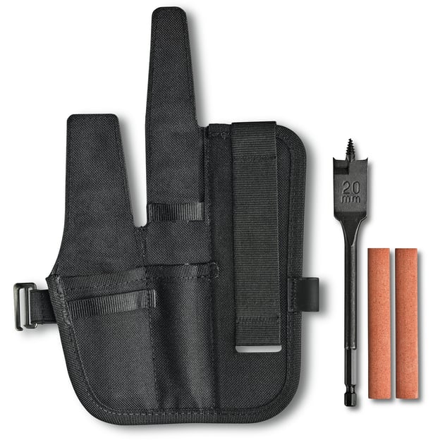 Чохол Victorinox Venture Pro 4.0540 розроблений для безпечного зберігання та зручного носіння складаного ножа Venture Pro разом з аксесуарами. У комплект входять чохол, плоске свердло та два точильні камені, що дозволяє за необхідності легко свердлити деревину та підтримувати леза в ідеальній гостроті прямо в дорозі. Чохол виконаний у чорному кольорі та точно відповідає розмірам ножа, забезпечуючи швидкий доступ до інструменту та його надійний захист.