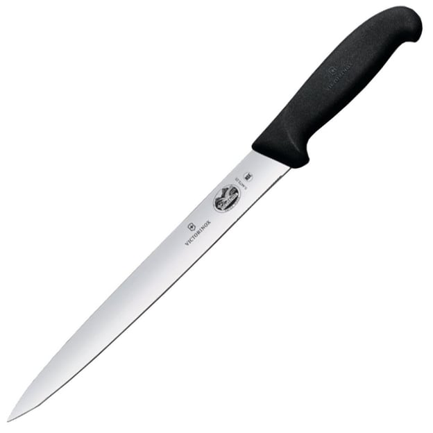 Професійний ніж Victorinox FIBROX Sausage FIBROX 5.4473.25 - ідеальний інструмент для нарізки. Цей спеціалізований ніж із серії Fibrox розроблений для ефективної роботи з різними продуктами, але особливо чудово справляється з нарізкою ковбасних виробів. Завдяки продуманому дизайну та якісним матеріалам він стане незамінним помічником як у професійній сфері, так і на домашній кухні. Лезо завдовжки 25 см виготовлене з неіржавної сталі, поєднує два типи заточки: гладеньке та дрібносерейторне. Таке комбіноване рішення забезпечує чистий, акуратний зріз без зайвого тиску. Сталевий сплав високої міцності гарантує довговічну гостроту, стійкість до корозії та надійність навіть за інтенсивного використання.