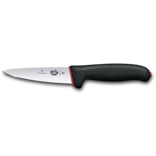 Victorinox DUAL GRIP Sticking 5.5603.12D - найкомпактніший ніж м'ясника з 12-сантиметровим лезом і чорною двокомпонентною рукояткою. Ця модель ідеальна для точних завдань, де потрібен максимальний контроль: проколювання, обробка, відділення м'яса від кістки і робота в важкодоступних місцях. Незважаючи на невеликі розміри, ніж розрахований на професійне використання в ресторанах, на харчових підприємствах і в м'ясних цехах.