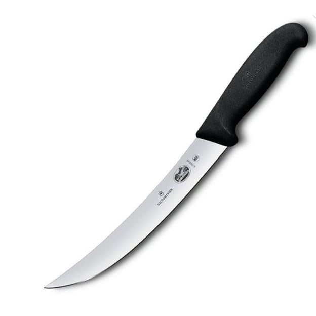 Victorinox FIBROX Breaking 5.7203.20 - професійний ніж для забою та обробки м'яса, створений для ефективної роботи на м'ясопереробних підприємствах, фермах, ресторанних кухнях і приватних господарствах. Клинок завдовжки 20 см із високоякісної неіржавної сталі, забезпечує виняткову гостроту, довговічність і стійкість до корозії. Гладка різальна крайка дає змогу легко і точно виконувати надрізи, зводячи до мінімуму втрати м'яса. Оптимальний баланс гнучкості та жорсткості робить ніж надійним інструментом для професійного використання. Ручка Fibrox вирізняється ергономічним дизайном, що забезпечує зручний і надійний хват навіть у складних робочих умовах. Її шорстка поверхня гарантує контроль над інструментом під час роботи у вологих руках, а також під час використання в рукавичках. Матеріал рукояті стійкий до ударів, зносу і витримує температуру до 110°C, дозволяє стерилізувати ніж і мити в посудомийній машині. Кухонний ніж сертифікований NSF, що підтверджує його відповідність міжнародним гігієнічним стандартам.