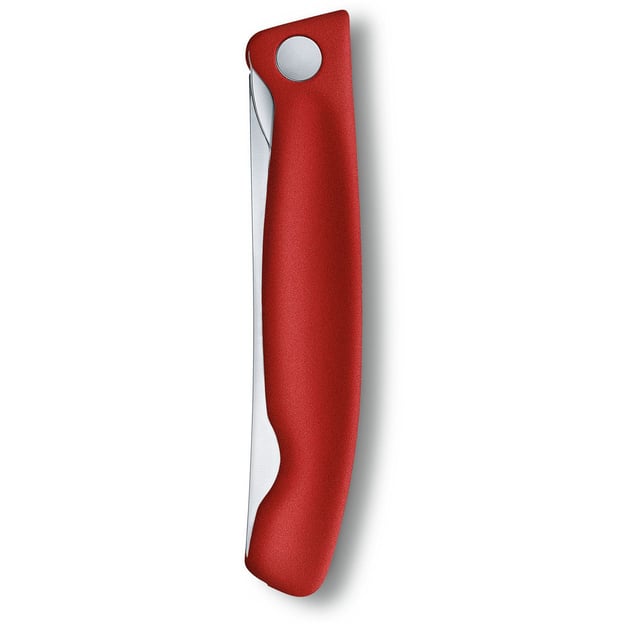 Victorinox SWISS CLASSIC Paring 6.7831.FB - складаний кухонний ніж із червоною ручкою і серейторним лезом довжиною 11 см. Ця модель розроблена для тих, хто цінує практичність, надійність і універсальність. Завдяки компактному дизайну, ніж чудово підходить для використання як вдома, так і в поїздках, на пікніках або під час відпочинку на природі. Лезо виготовлене із високоякісної неіржавної сталі і прикрашене фірмовим гравіюванням бренду Victorinox. Така заточка ідеально впорається з нарізкою та чищенням м'яких і твердих продуктів, включаючи овочі, фрукти та хліб. Складаний механізм забезпечує зручність зберігання і транспортування, а також підвищує безпеку. Ергономічна форма рукояті та нековзке покриття гарантують надійний хват навіть у вологих умовах, що робить використання ножа комфортним і безпечним.
