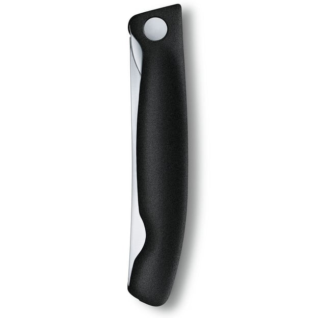 Victorinox SWISS CLASSIC Paring 6.7833.FB - кухонний ніж із чорним руків'ям і складним лезом довжиною 11 см. Ця модель розроблена для тих, хто цінує практичність, надійність і універсальність. Завдяки компактному дизайну, ніж чудово підходить для використання як вдома, так і в поїздках, на пікніках або під час відпочинку на природі. Серейторне лезо виготовлене із високоякісної неіржавної сталі і прикрашене фірмовим гравіюванням бренду Victorinox. Така заточка ідеально справляється з нарізкою та чищенням м'яких і твердих продуктів, включно з овочами, фруктами та хлібом. Складаний механізм забезпечує зручність зберігання і транспортування, а також підвищує безпеку. Ергономічна форма рукояті та нековзке покриття гарантують надійний хват навіть у вологих умовах, що робить використання ножа комфортним і безпечним.