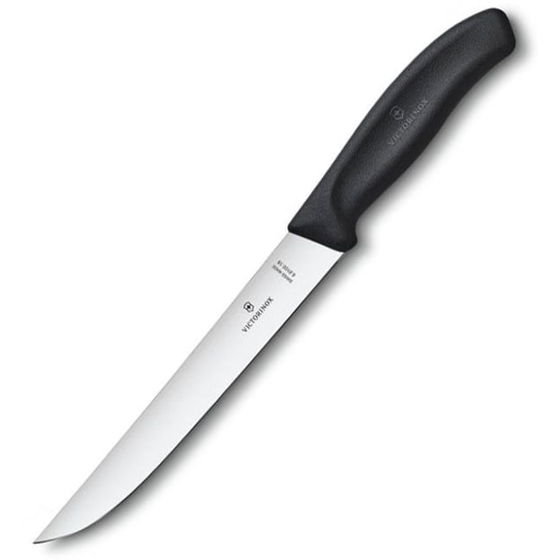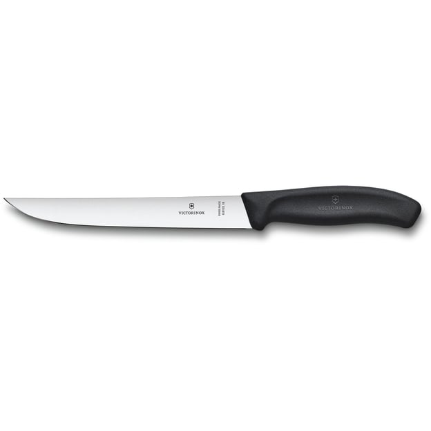 Victorinox SWISS CLASSIC Carving 6.8103.18B - обробний ніж із чорним руків'ям, забезпечить точне та легке нарізки м'яса, риби, птиці та овочів. Лезо завдовжки 18 см виготовлено із високоякісної неіржавної сталі, гарантує чудову гостроту, довговічність і стійкість до корозії. Завдяки гострозаточеному гладкому лезу, ніж легко впорається навіть із замороженими продуктами, забезпечуючи рівні й акуратні зрізи. Ергономічне руків'я з міцного поліпропілену має протиковзкі властивості, що робить роботу максимально комфортною і безпечною. Цей кухонний ніж чудово підійде як для професіоналів, так і для любителів. Він простий у догляді, стійкий до вологи та температур.