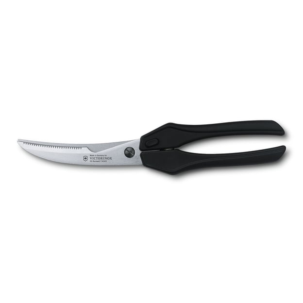 Ножиці для обробки птиці Victorinox 7.6343 - незамінний інструмент для професійних шеф-кухарів і м'ясників. Ці кухонні ножиці від швейцарського бренду Victorinox вирізняються високою міцністю, довговічністю і продуманим ергономічним дизайном. Леза з оптимальною твердістю і лазерною заточкою забезпечують відмінну стійкість кромки, що гарантує високу ефективність роботи. Кухонні ножиці ідеально підходять як для обробки сирого, так і готового м'яса птиці, забезпечуючи точну нарізку на акуратні порційні шматки. Механізм зі зворотно-пружинною дією робить процес роботи легким і комфортним, знижуючи стомлюваність навіть при тривалому використанні. На відміну від більшості аналогічних інструментів, сталь ножиць має антибактеріальні властивості, запобігаючи утворенню неприємних запахів і грибка, при цьому не впливаючи на смак продуктів. Ручки виконані з міцного поліаміду (ударостійкого та термостійкого пластику), які забезпечують надійний та зручний хват.