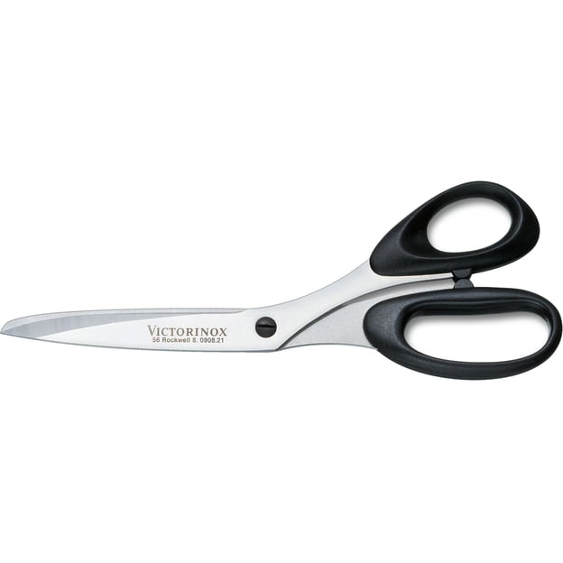 Ножиці Victorinox 8.0908.21 завдовжки 21 см є надійним і універсальним інструментом, підходять як для домашнього, так і професійного використання. Леза, виготовлені з міцної неіржавної сталі, зберігають свою гостроту навіть при тривалому застосуванні. Ручки, виконані з довговічного чорного пластику, мають ергономічну форму для максимальної зручності. Завдяки подовженим загостреним лезам, ножиці забезпечують акуратний і точний різ, що робить їх незамінними під час роботи з дрібними деталями. На лезах нанесене фірмове маркування Victorinox та індивідуальний серійний номер, підтверджуючи їхню оригінальність і високу якість.
