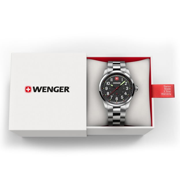 Чоловічий годинник Wenger TERRAGRAPH 43мм W01.0541.122 на сталевому браслеті. Насолоджуйтеся ідеальним поєднанням функціональності та дизайну. Бездоганний стиль від Wenger, який буде гордо красуватися на Вашому зап'ясті. Сріблястий сталевий браслет виглядає презентабельно і підходить як до повсякденного, так і до ділового стилю.