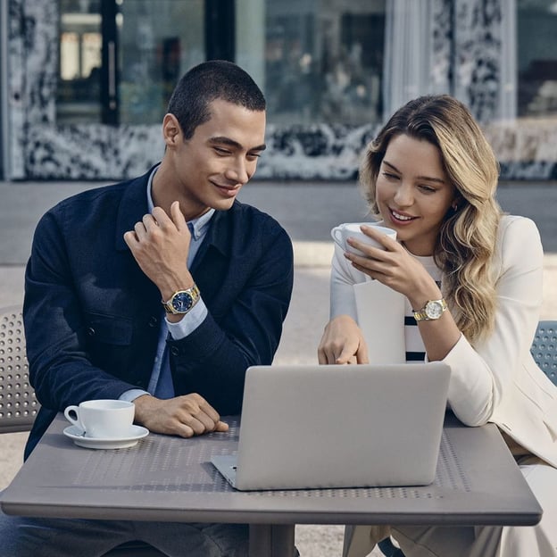 - Корпус 42 мм із висококласної неіржавної сталі з частковим PVD-покриттям кольору жовтого золота.