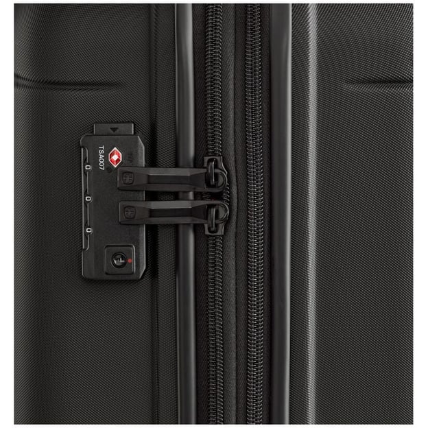 Валіза Wenger FLYN/Black 611446 Маленька (36x54x20-25 см / 32-40 л / чорна) - стильна ручна поклажа з функцією розширення та вбудованим TSA-замком. Компактна валіза преміум-класу, яка поєднує елегантний швейцарський дизайн та продуману функціональність. Завдяки невеликому розміру валіза ідеально підходить для коротких поїздок або як ручна поклажа. Чотири подвійні колеса, що обертаються на 360 градусів забезпечують плавний рух навіть у переповнених аеропортах. Просторе відділення організоване максимально функціонально, що дозволяє ефективно використати кожен сантиметр пакувального простору. Функція розширення дозволяє збільшити місткість валізи, тож ви отримуєте додатковий простір для речей у випадку, якщо багажу виявиться більше, ніж було заплановано.