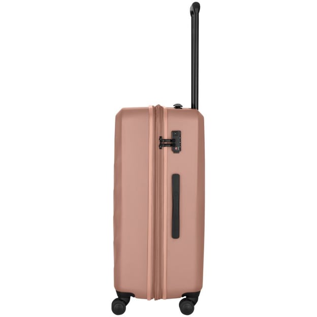Валіза Wenger MOTION/Desert 653773 Середня (48x69x29-34 см / 85-100 л / рожева) - стильна середня валіза з функцією збільшення об'єму та вбудованим замком TSA. Вирушайте у подорож із валізою, яка поєднує стиль, надійність та продумані деталі. Завдяки чотирьом колесам із подвійними роликами валіза рухається плавно та без зусиль, що робить пересування комфортним навіть у переповнених аеропортах. Внутрішній простір організований так, щоб кожна річ мала своє місце — від одягу до взуття, яке можна зберігати у спеціальному чохлі. Функція розширення дозволяє збільшити місткість валізи, тож ви отримуєте додатковий простір для речей у випадку, якщо багажу виявиться більше, ніж було заплановано.