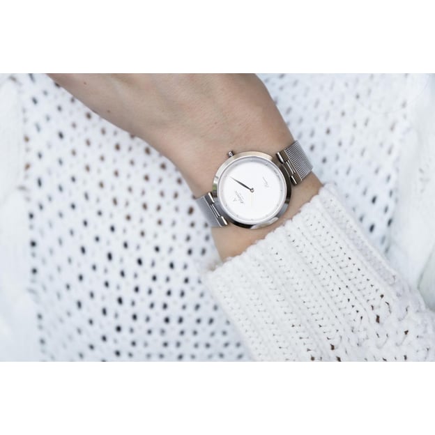Аксесуар у срібному виконанні із браслетом міланського плетіння створює враження ідеального супутника.
