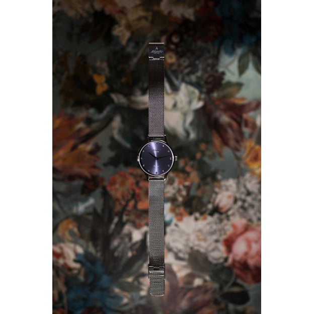 Жіночий годинник Atlantic ELEGANCE (арт. 29038.41.57MB) виконаний у класичному круглому корпусі зі сталі в сріблястому кольорі. Синій циферблат з аналоговою індикацією виглядає стримано та виразно, а кварцовий механізм забезпечує простоту та комфорт у щоденному користуванні.