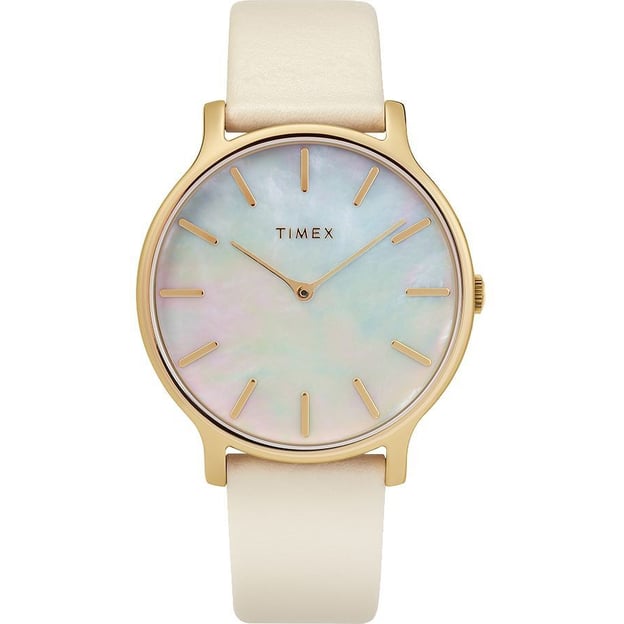 Годинник Timex TRANSCEND Tx2t35400 — це елегантний годинник на білому шкіряному ремінці.