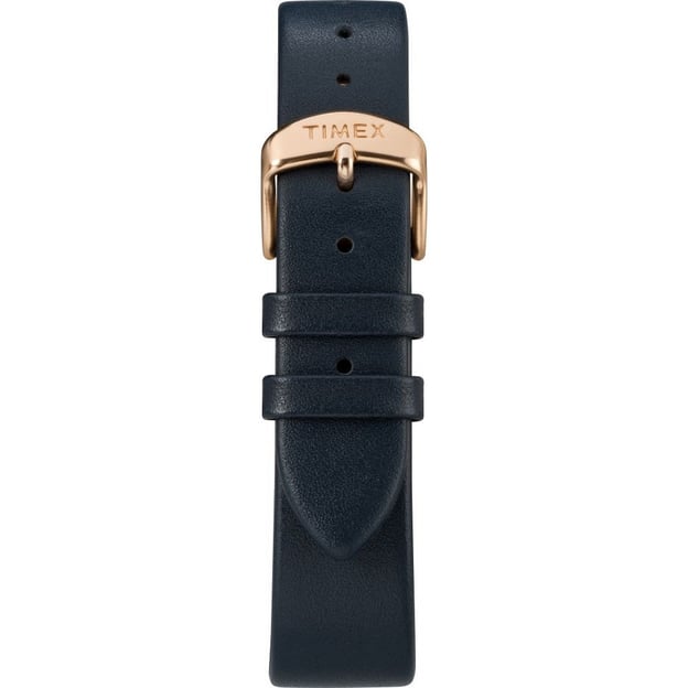 Timex Crystal Bloom TW2R66400 — жіночий годинник класичного формату з круглим латунним корпусом у відтінку рожевого золота. Синій циферблат з аналоговою індикацією виглядає виразно та легко читається, а мінеральне скло додає практичності на кожен день.